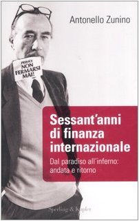 Questo volume racchiude la narrazione dei molti anni di lavoro di Antonello Zunino uniti allo spaccato dei grandi eventi finanziari mondiali ai quali l'autore ha partecipato in prima persona. Dagli studi all'estero negli anni Cinquanta e i contatti con la realtà statunitense e Wall Street alla rottura del sistema di Bretton Woods, dalle crisi petrolifere del 1972-73 e 1979-'80 al crollo della Borsa americana dell'ottobre 1987, fino alla bolla del 2000. Un ampio quadro in cui si inserisce la storia della sua vita professionale: dall'inizio con un impiego presso la Società Romana di Elettricità alla posizione dirigenziale con il gruppo La Centrale Finanziaria; con una società del gruppo Agnelli fino ai vertici dell'I.M.I. Infine, dal 1991, in Mediolanum dove tuttora ricopre la carica di consigliere nella capogruppo Mediolanum S.p.A. e in numerose consociate. Alle vicende lavorative si alternano tanti ricordi personali, aneddoti e anche i ritratti dei molti personaggi conosciuti.